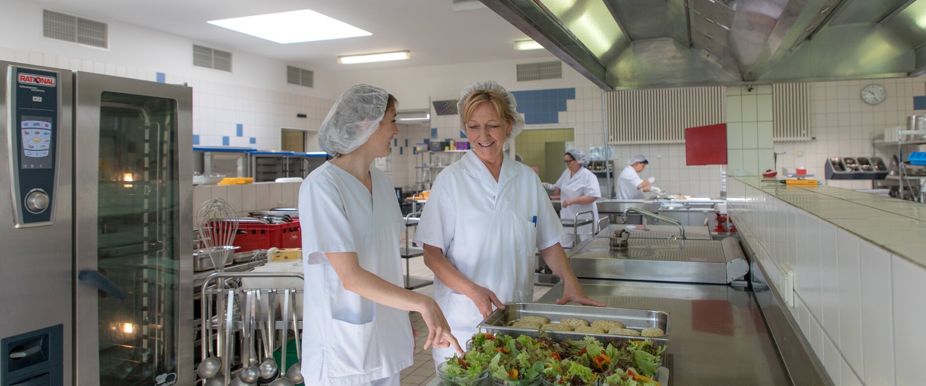 Wir wissen, wie sehr gutes Essen zum Wohlbefinden unserer Patienten beiträgt. Unsere Küchenchefin Heidrun Egerter sorgt mit ihrem Team für das leibliche Wohl unserer Patienten und unsere Gäste des Speisesaals. Beim Einkauf von Fleisch, Wurst, Salaten, Gemüse und Obst legen sie besonderen Wert auf frische und fair gehandelte Produkte sowie heimische Erzeugnisse. Gekocht wird nach den vorgegebenen ärztlichen Indikationen und den Angaben unserer Diätassistentinnen. Selbstverständlich berücksichtigen wir auch vegetarische oder kulturell bedingte Speisegewohnheiten.